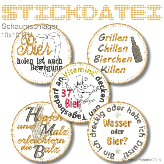 A Bier Untersetzer 10x10 Ith Stickdatei Stickmuster Sticken Etsy De